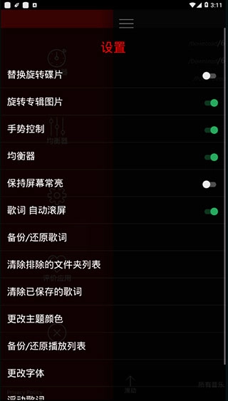 支持滑动切歌、双击暂停等多种手势控制,还能选择保持屏幕长亮,操作直观流畅,不用复杂步骤就能轻松掌控播放。