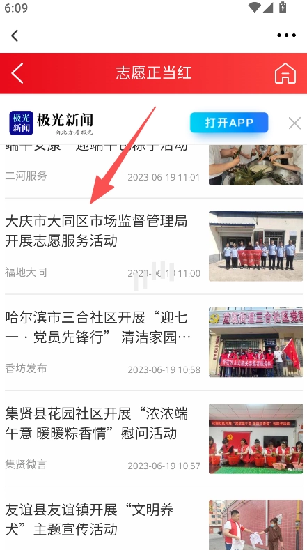 资讯更新及时,像大庆市、哈尔滨市近期的志愿活动这类资讯会第一时间发布,方便用户了解最新的志愿活动动态。