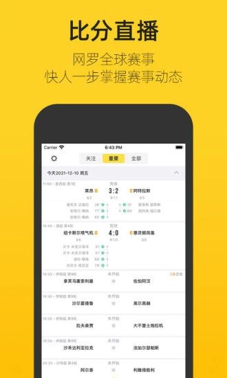 1、实时为用户更新比赛数据,让大家可以及时掌握国外赛事的比分动态。