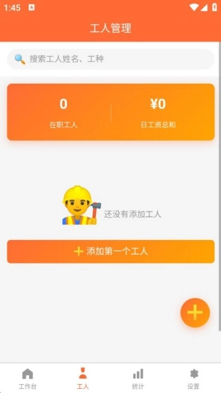 1、可以查看在职工人数量、日工资总和,也能查看工人详细信息,这些内容都能一目了然地获取。