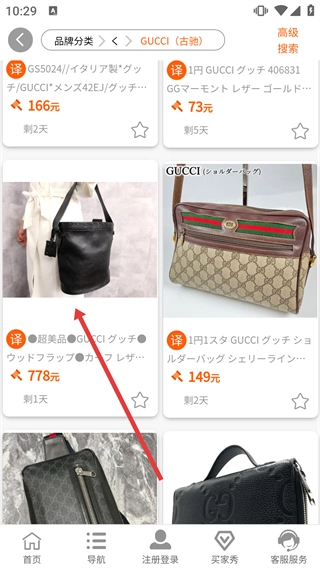 从轻奢品牌列表里挑选【古驰】,就能进入古驰的商品列表页面。