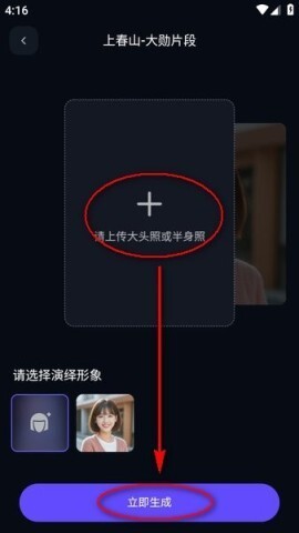 3、最后上传一张大头照或者半身照,点击“立即生成”按钮,就能看到最终的效果了。