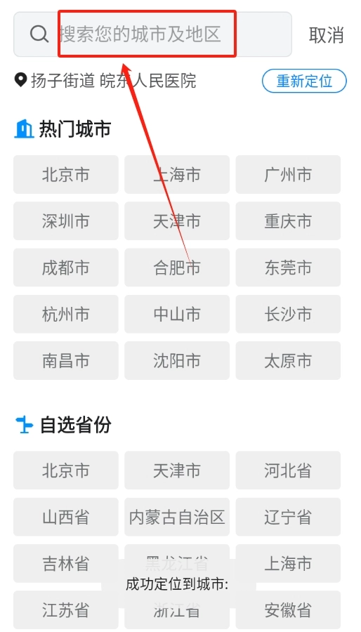 在搜索栏中输入城市名称,就能快速查询到其他城市的天气信息,整个操作过程简单又便捷。