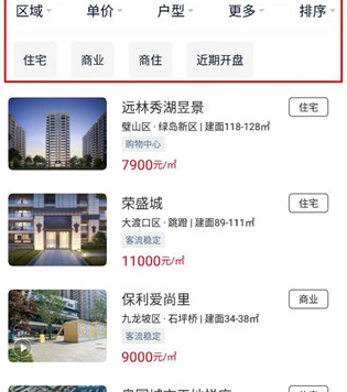 3、根据自己的要求,将所有的房子进行排序筛选。