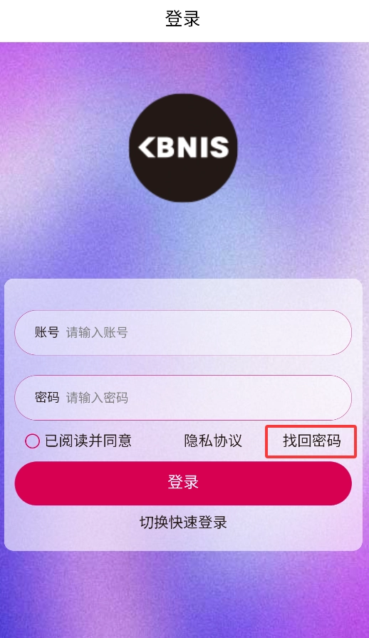 启动kbnis后,在登录页面点击“找回密码”选项,即可进入密码重置流程。