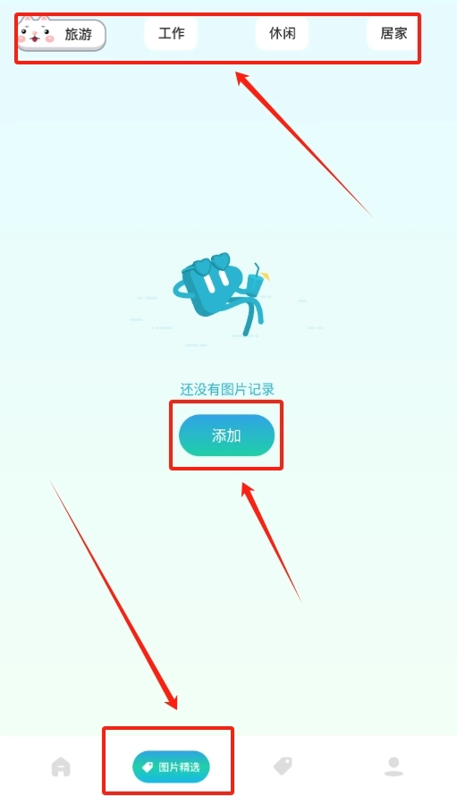 打开软件后,直接进入图片精选页面,从众多选项中选择符合你要记录事件的类型,然后点击添加按钮。