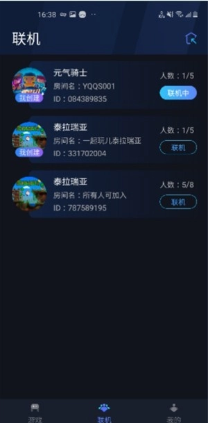 4、无论是加入他人房间还是自行创建房间,都能在【联机】页面查看已有的房间列表。点击目标房间进入详情页后,再点击【联机】按钮,即可成功与房间内的成员建立联机连接。