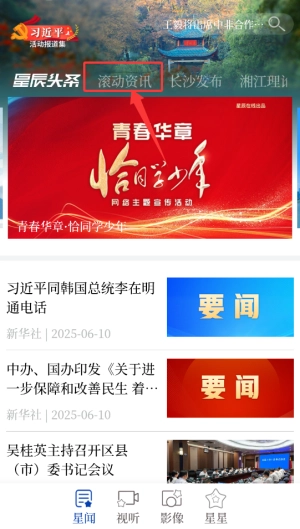打开星辰头条后,在首页导航栏找到“资讯”频道并点击进入,该频道会实时推送各类热点新闻内容。