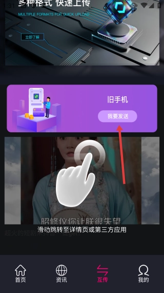 在软件界面中,找到并点击【互传】按钮,即可进入互传功能的选择界面。