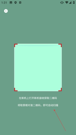 打开二维码页面后,把【取景框对准新机的二维码】,就能连接手机并完成视频互传的操作了。