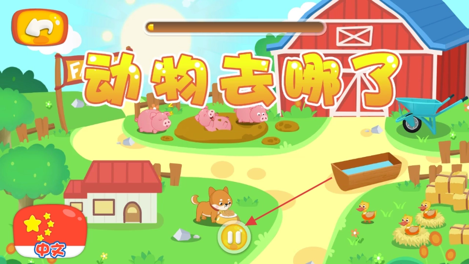 进入像【动物去哪了】这类故事互动场景时,你可以点击暂停按钮来把控学习节奏,进而参与到互动学习当中。
