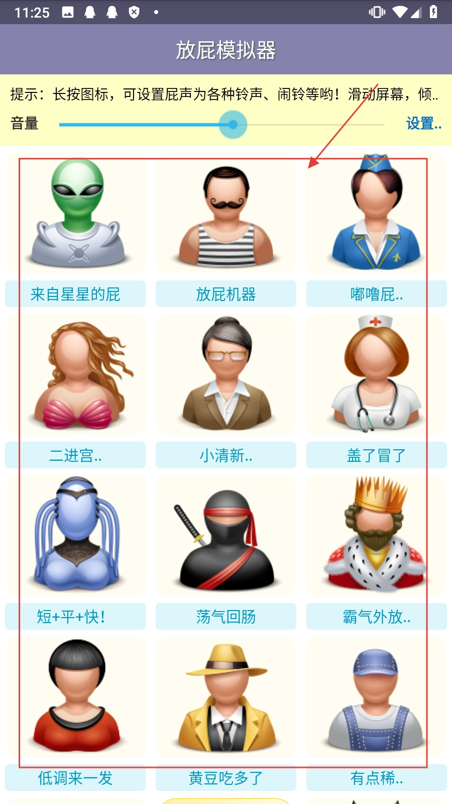 进入放屁模拟器界面后,你可以挑选【来自星星的屁、放屁机器】这类屁声类型,尽情体验趣味十足的屁声模拟乐趣。