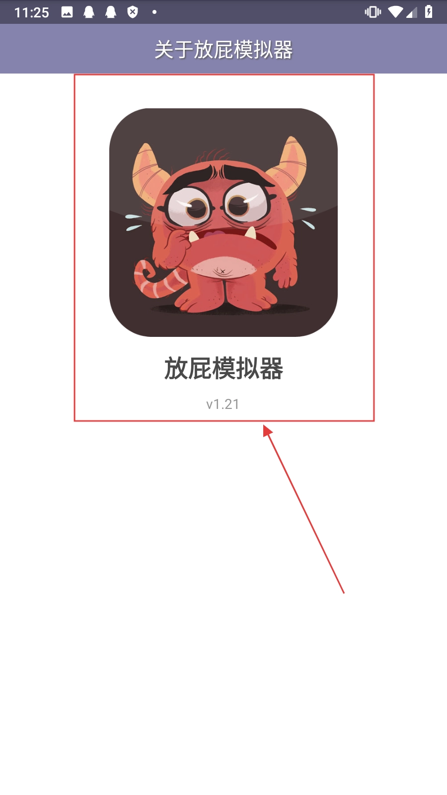 进入关于界面,能【查看放屁模拟器的版本信息】,知晓应用相关情况。