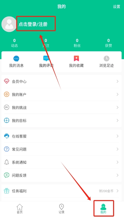 打开戒烟客应用程序,进入主界面后,轻点底部的“我的”页面,找到登录按钮并点击以完成登录操作。