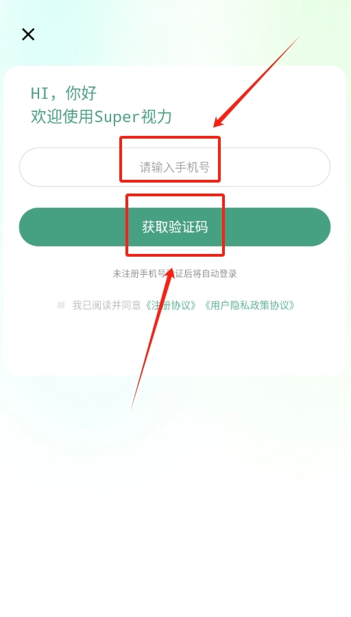 进入登录页面后,先填写手机号,待收到验证码并输入完成,确认即可登录该软件。