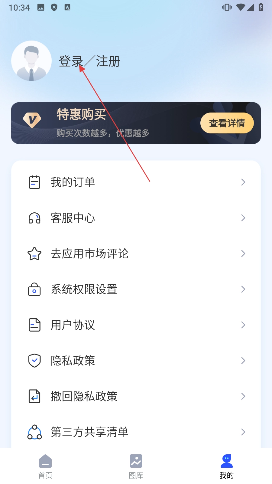 点击底部【我的】,进入个人中心页面。