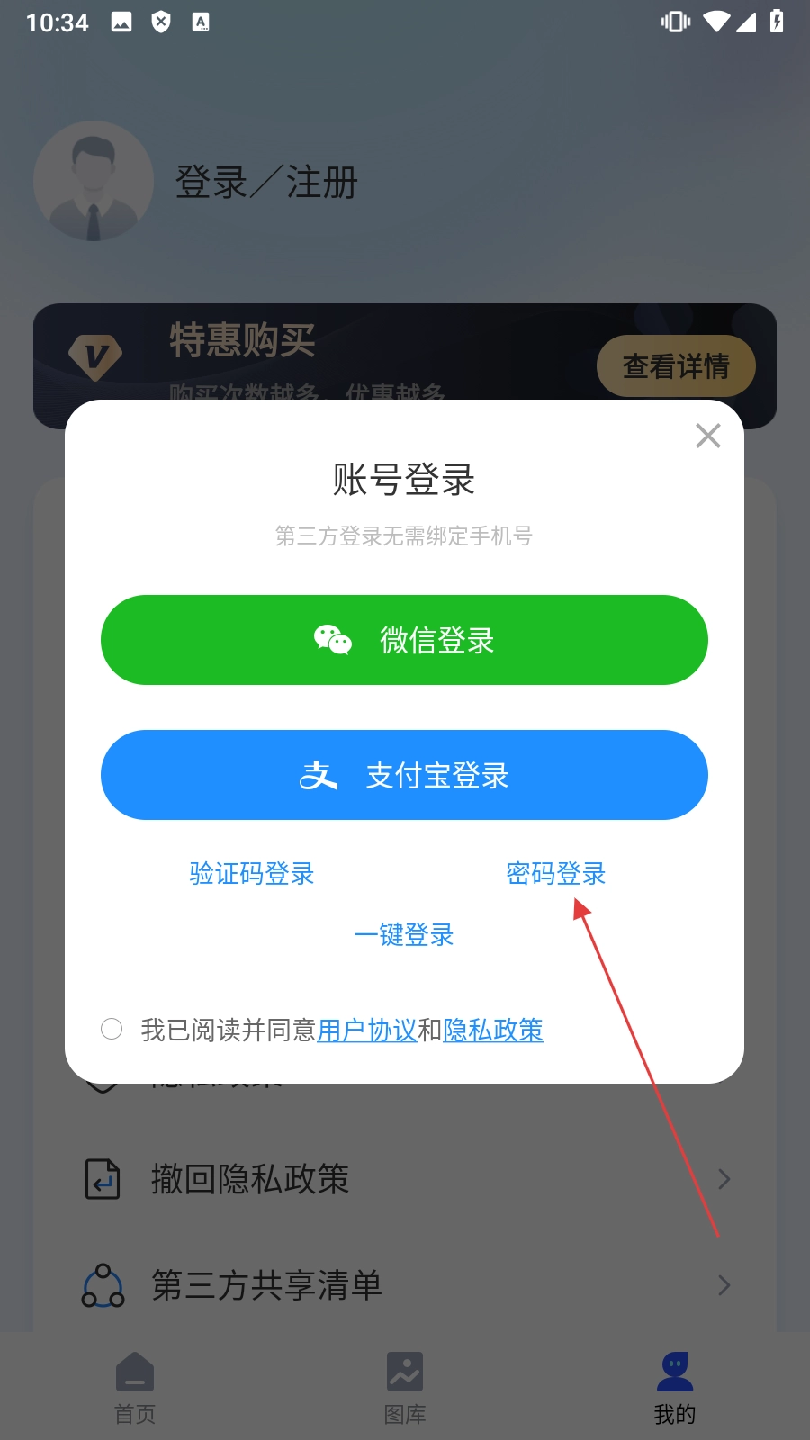 在窗口中,点击【密码登录】,进入密码登录页面。
