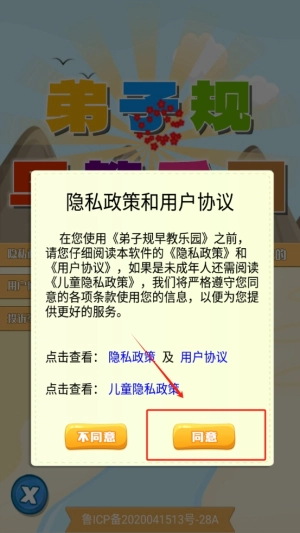 首先点击同意确认协议,接着就能顺利进入应用界面,准备开启国学启蒙的学习之旅。