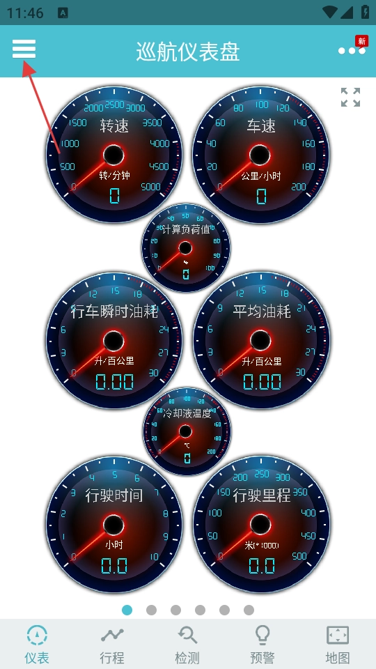 在巡航仪表盘页面,点击左上角的菜单按钮,即可展开功能菜单。
