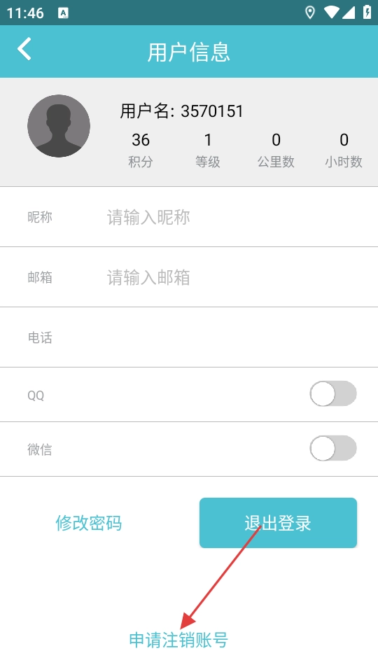 在用户信息页面,点击【申请注销账号】选项,即可进入账号注销流程。