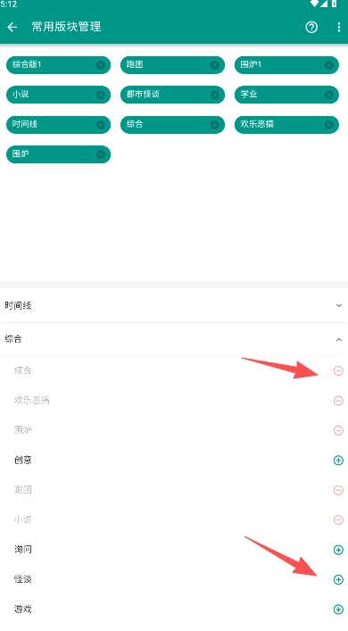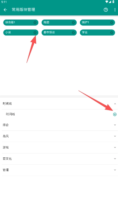 2、+号符号用于将内容添加到常用版块,若需删除内容,直接点击x符号即可去除。