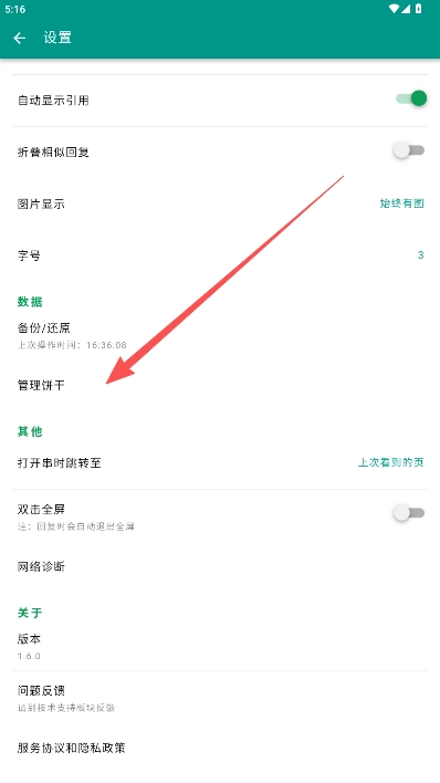 2、在设置内容页选择“管理饼干”。