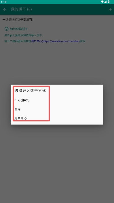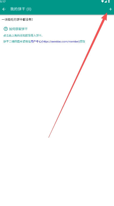 3、进入我的饼干页面后,看到自己的饼干值显示为0,页面下方有相关提示说明,按照提示里给出的方法,点击页面右上方的+号按钮。