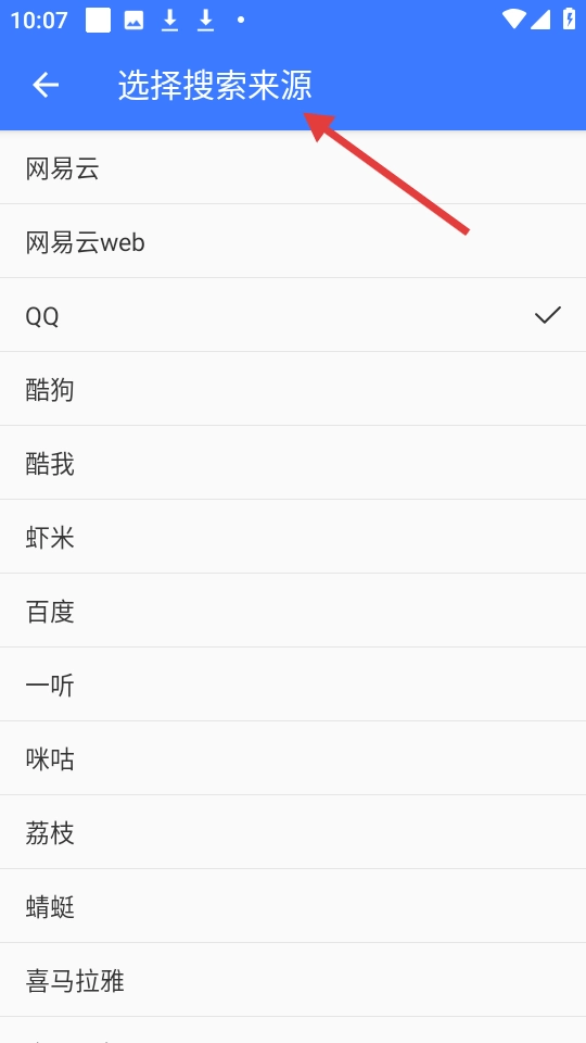 在【选择搜索来源】界面能够挑选不同的音乐搜索来源。