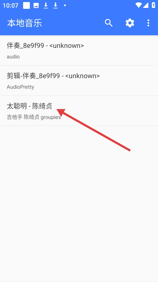 在本地音乐列表里点击《太聪明》(陈绮贞演唱),就能执行播放等相关操作。