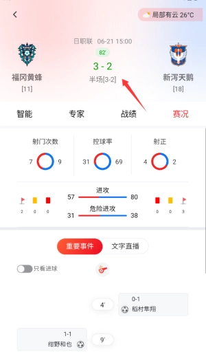 进入赛事详情页面后,你能够查看涵盖实时数据、技术统计在内的全部比赛分析内容。