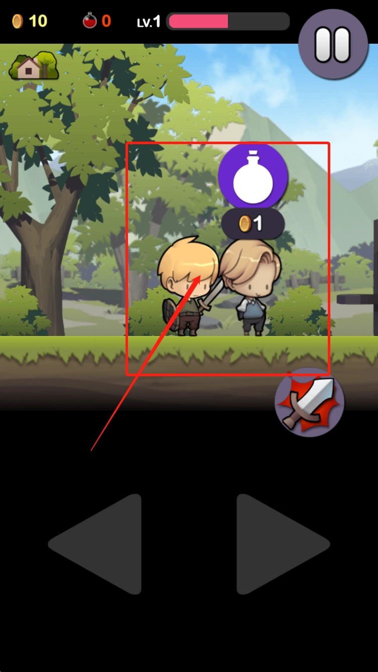 进入关卡后,玩家能够与画面中的角色互动,使用金币来兑换药水。
