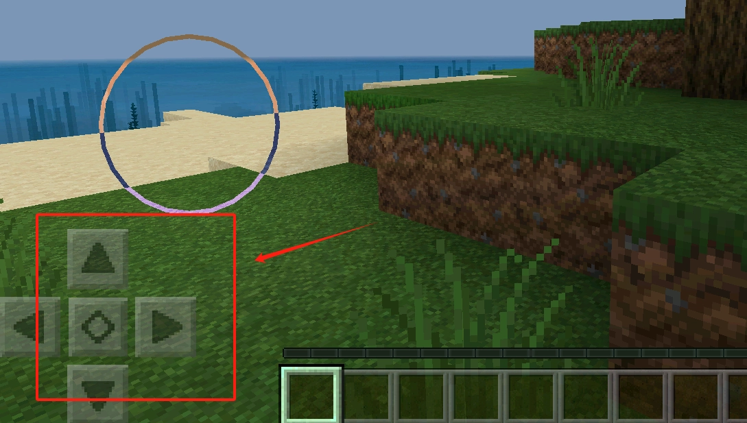 按左下方的方向键可以操控角色移动,在右下方的物品栏里选中绿色方块就能使用它。
