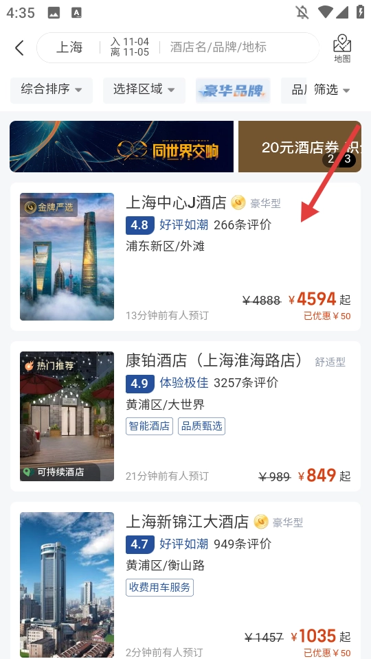 选择目标酒店,点击进入该酒店详情页面。