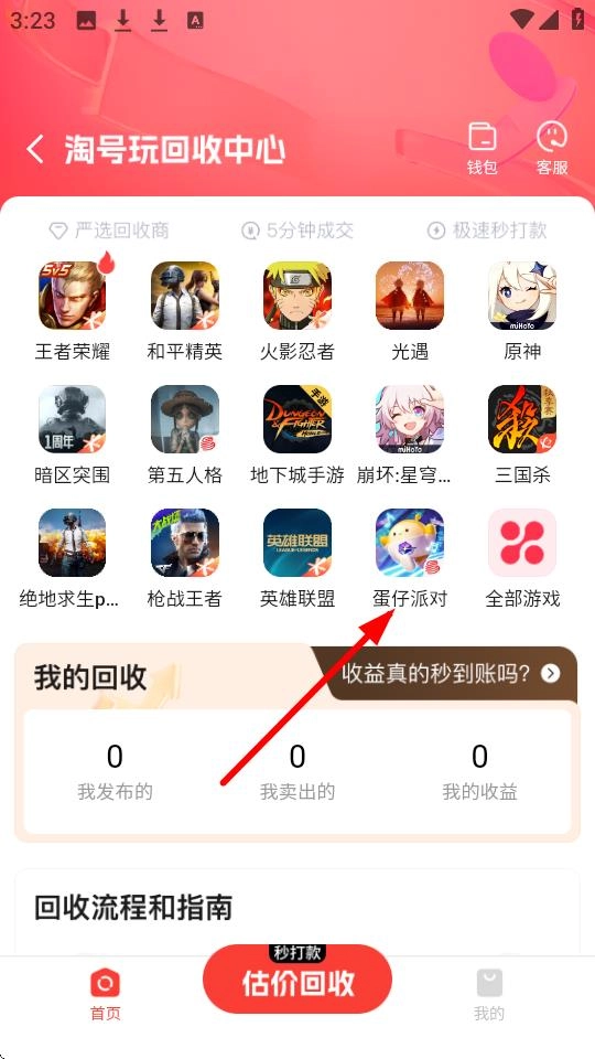 在【淘号玩回收中心】里找到【蛋仔派对】的入口,点击该入口就能进入对应的回收流程。