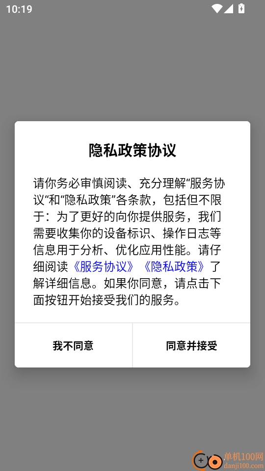 1. 首先打开软件,仔细阅读“隐私政策协议”,阅读完毕后点击“同意并接受”按钮进入下一步。