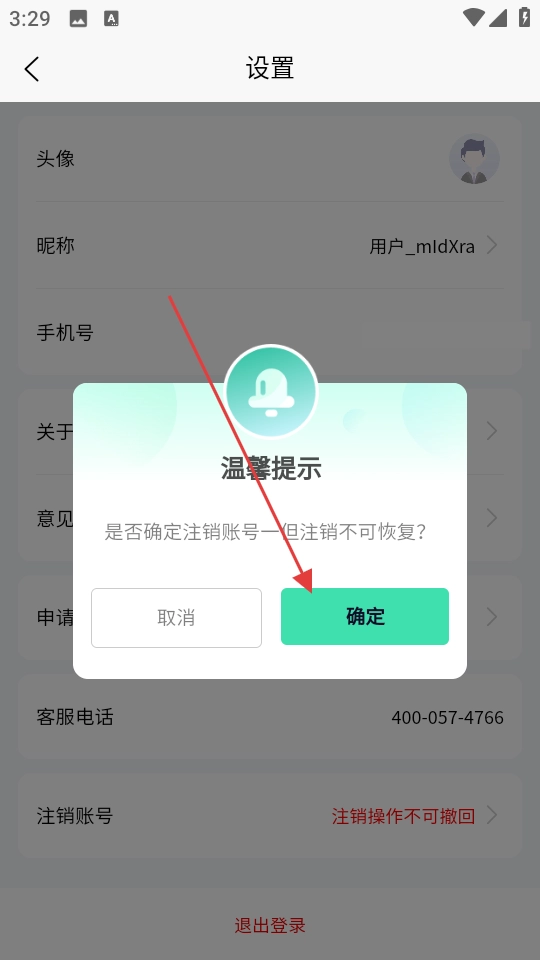 在温馨提示弹窗里,点击【确定】按钮,即可完成账号注销流程。