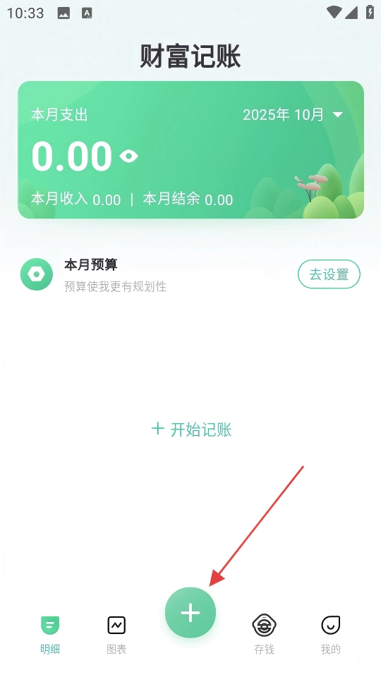 在主界面中,点击底部正中间的【+】按钮,即可进入支出记账页面。