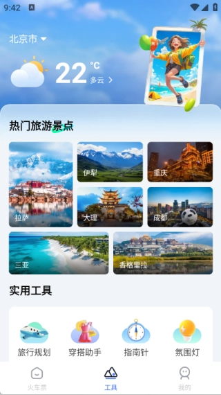 在工具板块里,你既能浏览热门旅游景点的相关信息,也能找到各类实用的功能工具。