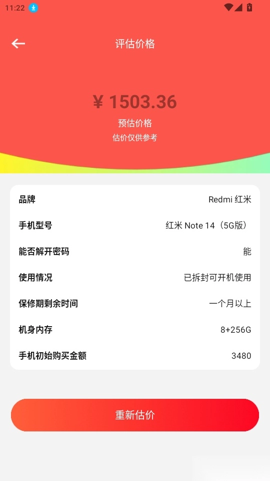 4. 获取闲置物品的价格评估结果,可在线查看并了解详情