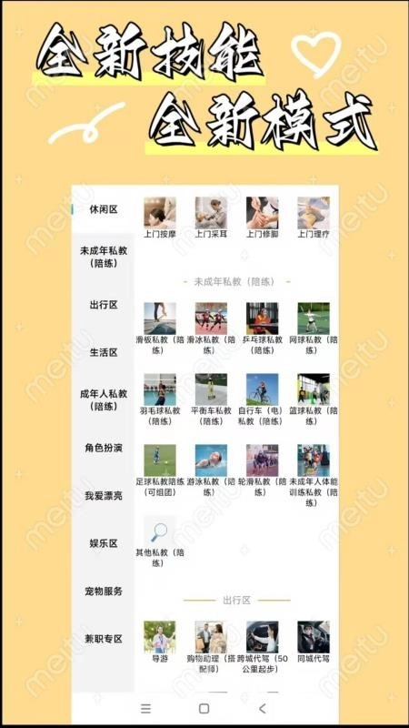 这是一个同城兼职平台,旨在让你的各项技能与闲暇时光都能创造出应有的价值;通过简单、便捷、高效且全面的方式,展示你所具备的技能,为同城的消费者服务,在生活、运动、学习、休闲、娱乐等方面为他们提供便利,助你轻松获取可观的收益。