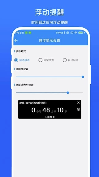 1、工作考勤:上班族可设置每日上下班的打卡时间,系统会提醒其按时打卡,以此防止迟到早退情况的发生,助力维持优良的考勤记录。