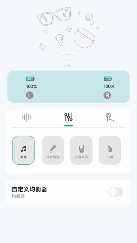2、完成设备添加后,可在应用内实时查看耳机状态,还能开启均衡器功能。