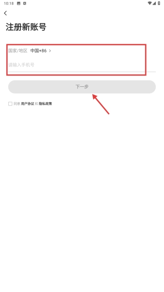 4、在注册页面输入手机号码,点击“下一步”按钮,继续推进账号注册流程。