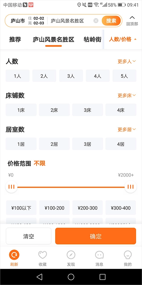 5、选定城市后,软件还能为用户推荐该城市知名景点周边的度假公寓信息(下图以江西首批5A景区庐山风景区为例)