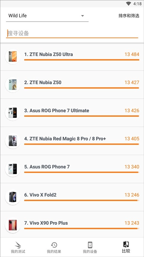 6、还能够浏览并对比其他手机的跑分成绩,从而获取更全面的性能参考。
