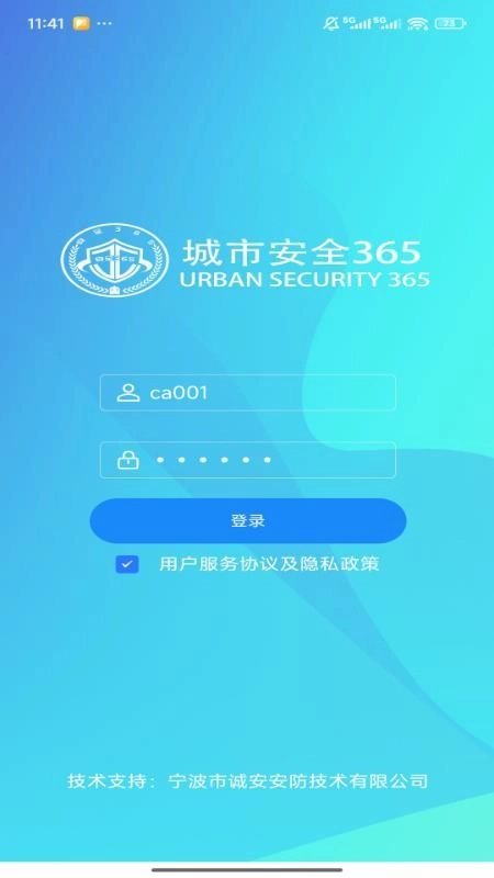 1、保持在线状态并打开城市安全365软件,输入对应的账号和密码即可登录进行办公操作;