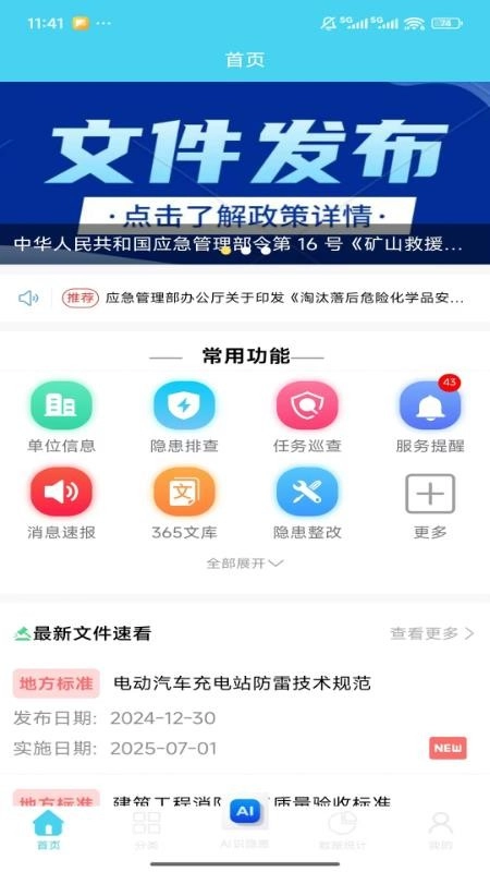 城市安全365软件是一款功能全面的安全生产综合管理工具,致力于为用户提供更便捷高效的管理服务。用户通过手机端即可实时掌握单位生产动态,清晰了解每日工作任务,还能便捷排查安全隐患,确保工作安全无忧,有效提升工作效率。该软件适用场景十分广泛,无论是服务机构、企业还是政府部门,都能借助它开展日常繁杂的工作任务,享受贴心的服务体验。作为强大且智能的工作助手,它运用先进的AI技术,切实保障用户日常工作的高效运行;同时,用户可详细查看各类统计数据,了解各项数据的具体情况,方便日常办公,尽享贴心服务。有相关需求的用户,不妨下载城市安全365手机版体验使用!