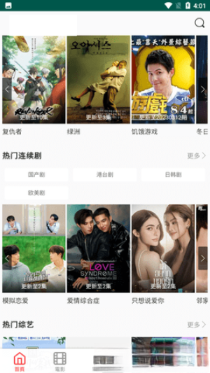 1. 首页界面采用清爽简洁的设计风格,当下最热门的精选影视剧内容都在首页集中呈现。