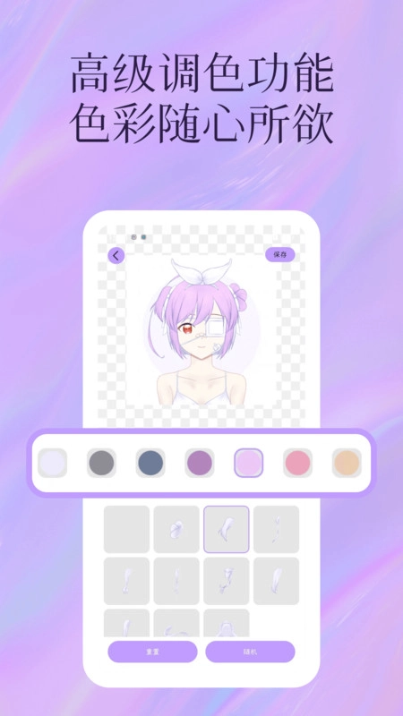 2、挑选你钟爱的头像进入,在这里能够开展创作,并且平台提供了十分完备的素材,完成创作后点击右上角的保存按钮就可以了。