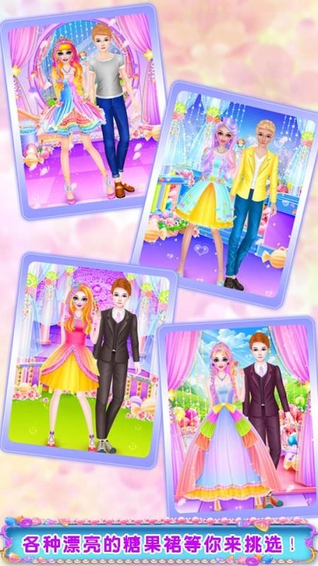 在这美好的季节里,一场时尚艺术沙龙聚会即将举行,你还在犹豫什么呢?快来挑选一位漂亮的女孩,帮助她精心化妆打扮,一同前往聚会吧。为她打造潮流糖果装,呈现当下最流行的缤纷糖果风格妆容与服饰。秀出你出色的装扮技巧,再帮她选一位帅气的男孩,最后向我们展示成果吧。